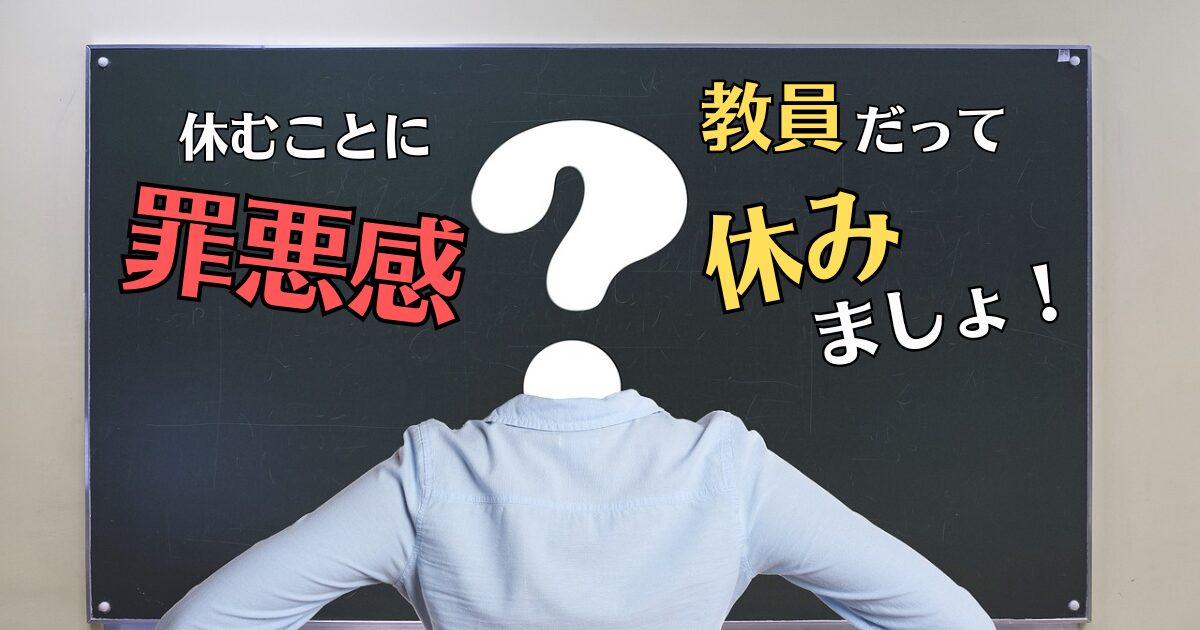 でも、教員という仕事をしていると、休むと迷惑をかけてしまうかもと思い、休むことに罪悪感をもってしまうことってありますよね。担任をもっているとなおさらかもしれません。